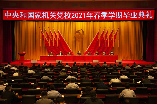 5月31日,中央和國家機關黨校舉行2021年春季學期畢業典禮。中央和國家機關工委分管日常工作的副書記、中央和國家機關黨校校長梁言順出席畢業典禮,并為學員頒發畢業證書。