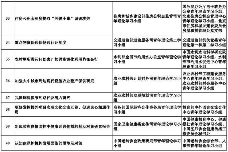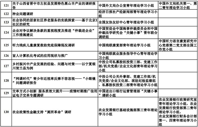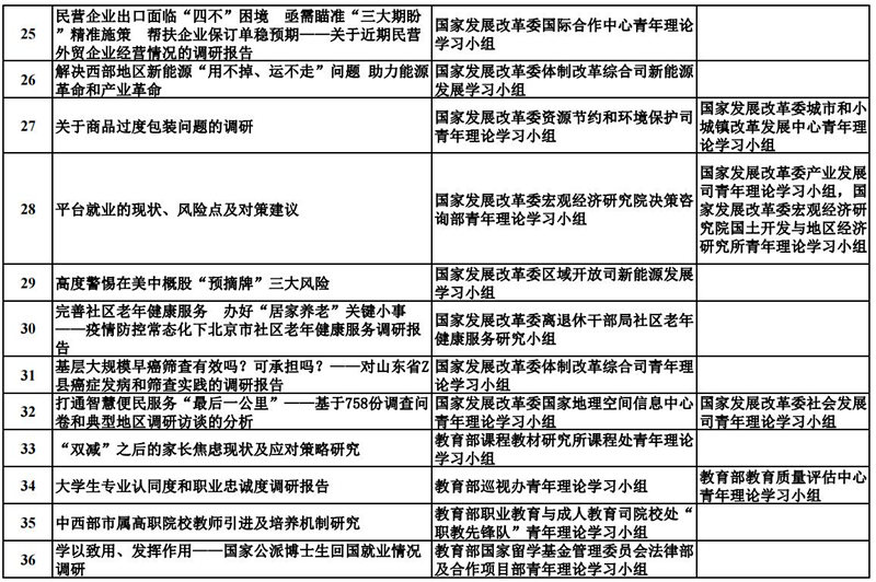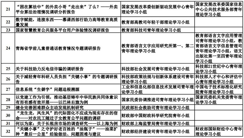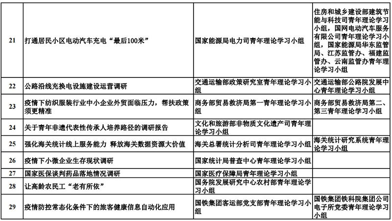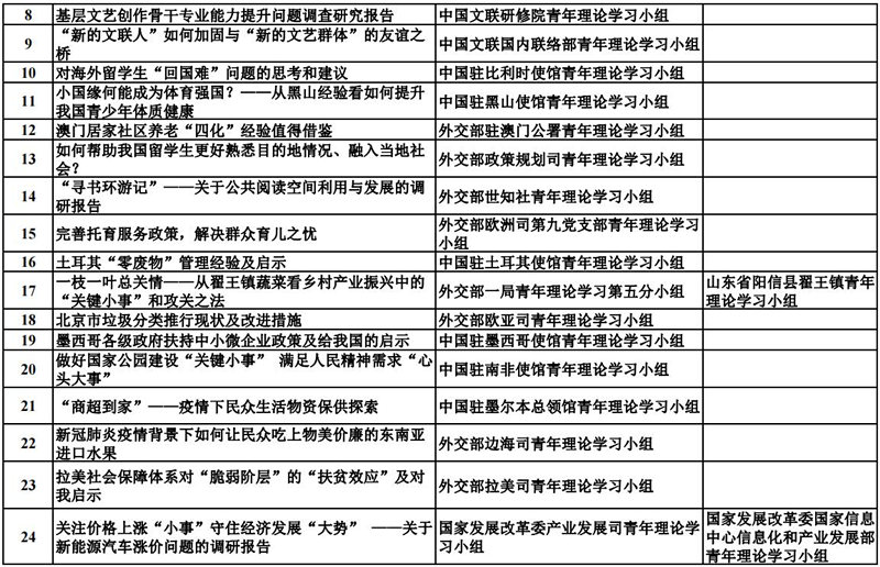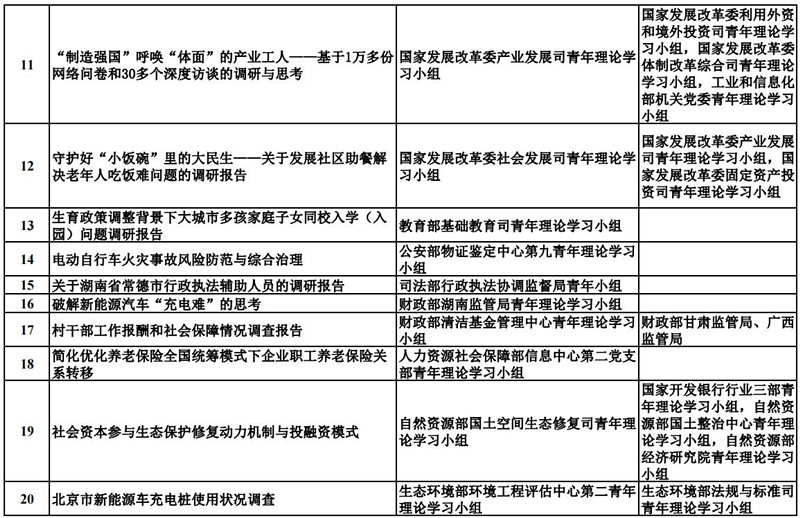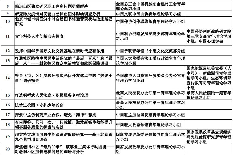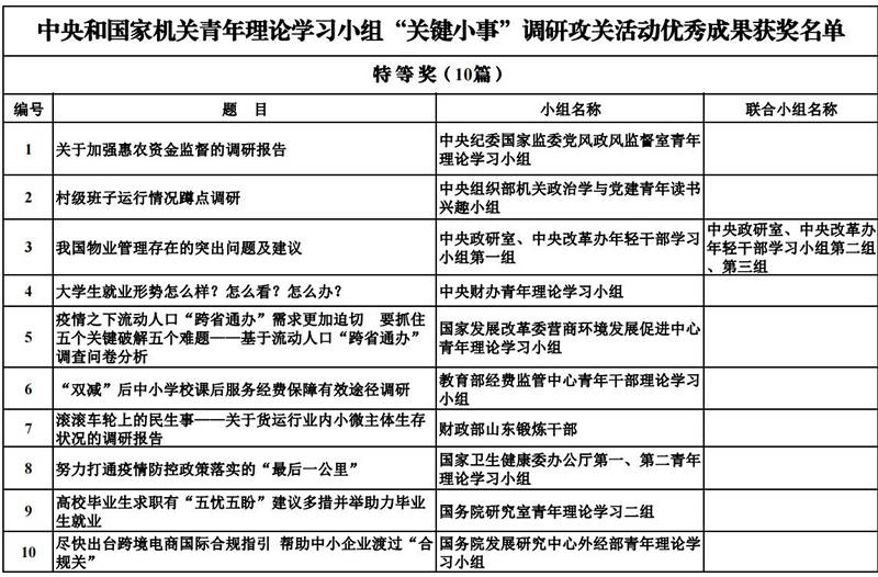 中央和國家機關青年理論學習小組“關鍵小事”調研攻關活動優秀成果獲獎名單