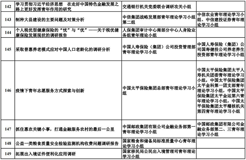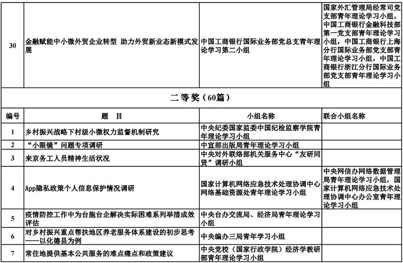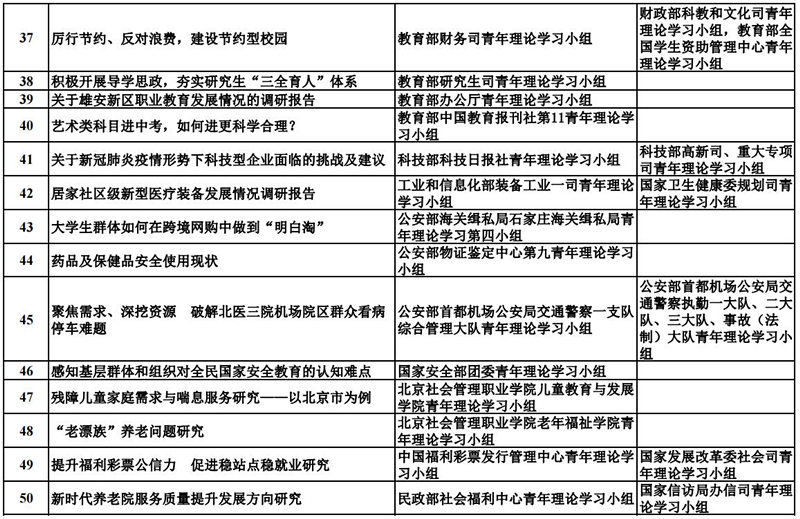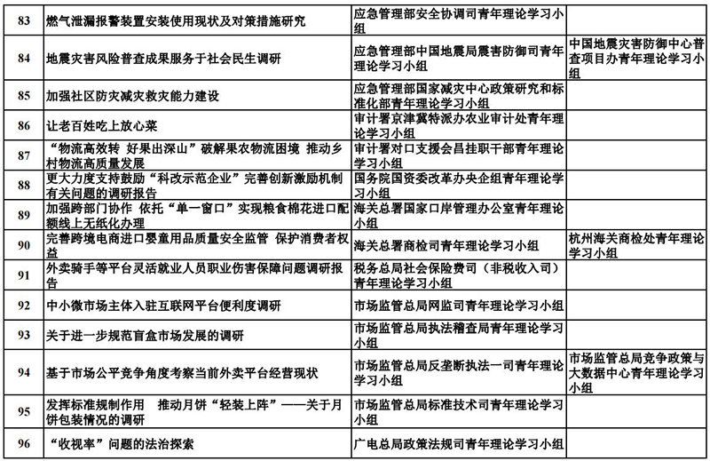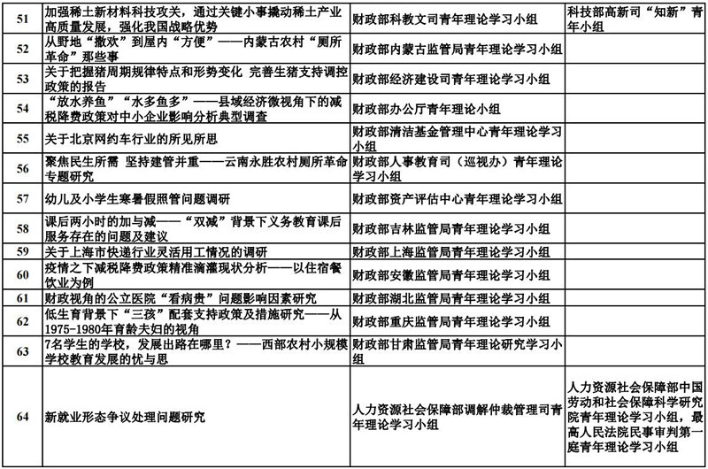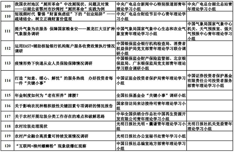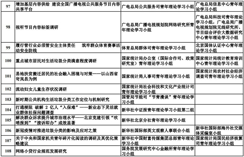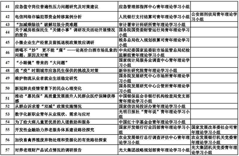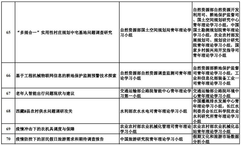 中央和國家機關青年理論學習小組“關鍵小事”調研攻關活動優秀成果獲獎名單