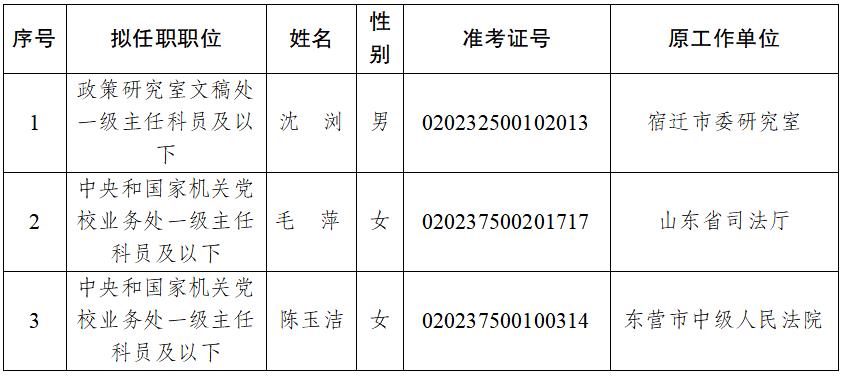 根據2023年度中央機關公開遴選公務員工作有關要求,經過筆試、面試、體檢和考察等程序,經研究,確定沈瀏等3位同志為中央和國家機關工委公開遴選公務員擬任職人員(名單詳見附件),現予以公示。公示期間如有問題,請向中央和國家機關工委組織部反映。