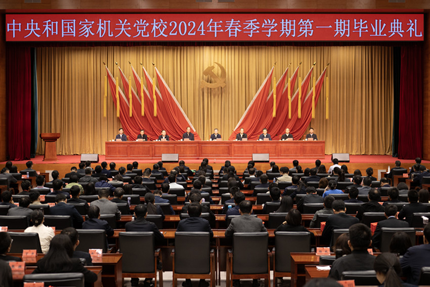 4月29日,中央和國家機關黨校(中央黨校中央和國家機關分校)舉行2024年春季學期第一期畢業典禮。中央和國家機關工委分管日常工作的副書記、中央和國家機關黨校(中央黨校中央和國家機關分校)校長郭文奇出席畢業典禮并為學員頒發畢業證書。
