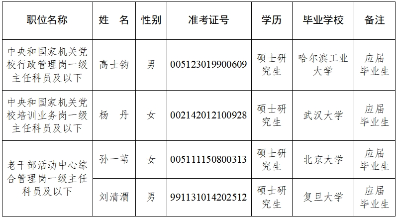 根據2025年度中央機關及其直屬機構考試補充錄用公務員工作有關要求,經過面試、體檢和考察等程序,擬錄用高士鈞等4人為中央和國家機關工委參公單位工作人員,現予以公示。公示期間如有問題,請向中央和國家機關工委組織部反映。