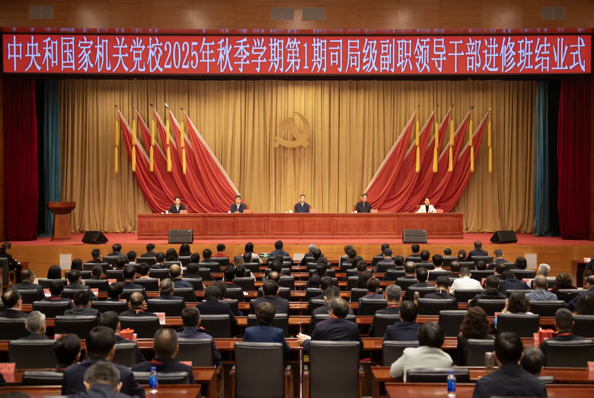 中央和國家機關紀檢監察工委,中央和國家機關工委辦公廳、組織部有關負責同志出席結業式,2025年秋季學期第1期司局級副職領導干部進修班學員和黨校干部職工等共260余人參加。